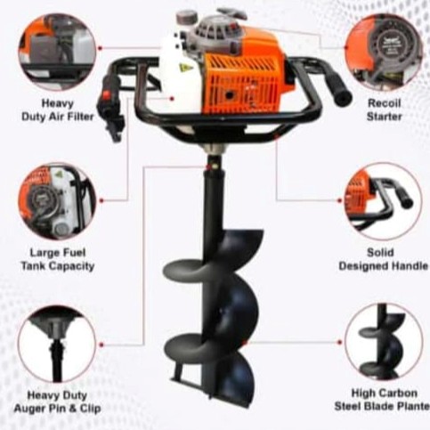 Ефикасен агер со тешки вредности-опремена со силна ажурирана челична рамка со високи перформанси, издржлива кутија за менувачи, погодна за оперирана со еден човек, овој 2 мотор со мотор со силен бензин Аугер 63цц има брза брзина на аугер и висока ефикасност за време на употребата на потолирање и други земјоделски или индустрии.