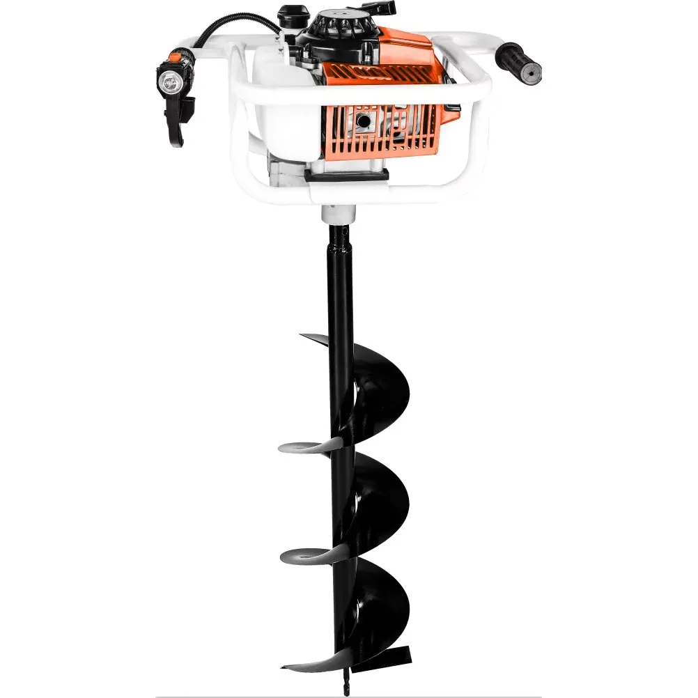 Лесен за ракување-Уникатниот дизајн на овој 63cc бензин Земја Аугер е ергономски, удобен за ракување и лесен за контрола на нови корисници, еден човек е доволно, супер лесен дизајн на почетници, зачувај го својот труд, може да го започне моторот во рамките на 3-5 пати брза брзина на притисок од рацете, а потоа можете да уживате во мазно чувство за копање со лесна работа.